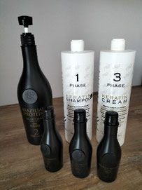 3) Conditionner lissant avec Kératine, phase 3 : Soin profond démêle, lisse et discipline les cheveux après le traitement lissant apport de kératine (lissage brésilien) et avant le coiffage. Il rééquilibre le PH du cheveux.